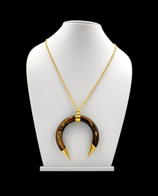 Hand Carved Ox Bone Crescent Necklace - 18" Gold Plated Statement Pendant